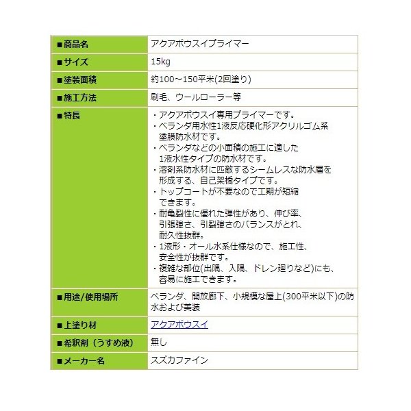 ウレタン防水 アクアボウスイネオ スズカファイン アクアグレー アクアグリーン 16kg 7.27から11.4平米分 アクアボウスイNEO 漏水 劣化 水性 ベランダ用 屋上防水用 簡易防水材