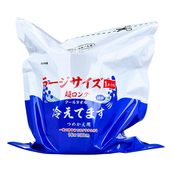 超ロングクールタオル 冷えてます 100cm×16cm 60枚入 6個箱 バケツタイプ 詰め替え用 ボディシート ホリコー