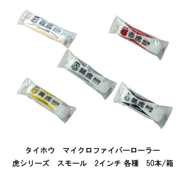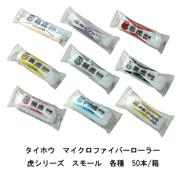 虎ローラー スモール 50本箱 タイホウ 白虎 4ミリ 赤虎 10ミリ 黄虎 12ミリ 銀虎 13ミリ 黒虎 18ミリ 2インチ マイクロファイバーローラー