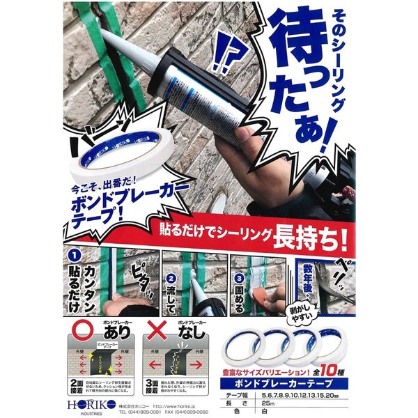 ボンドブレーカーテープ 幅7ミリ 25m 10巻箱 215円巻 シーリング 3面接着防止用ボンド ホリコー