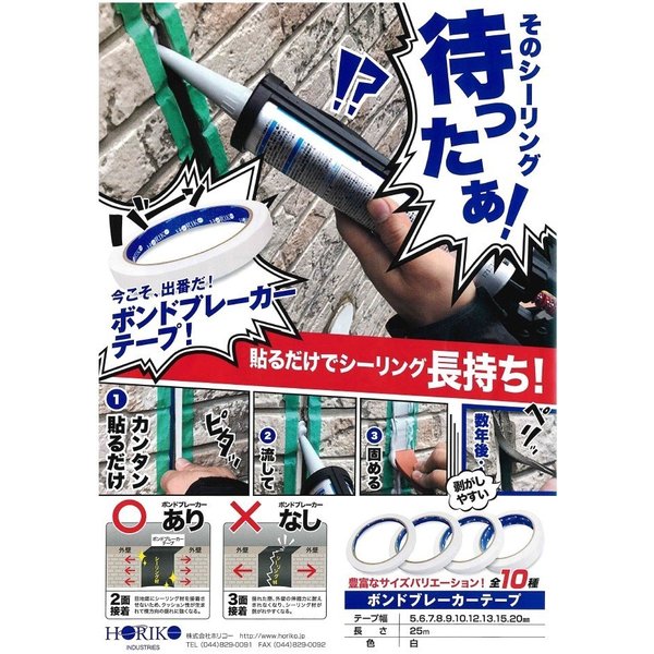 ボンドブレーカーテープ 幅6ミリ 25m 10巻箱 210円巻 シーリング 3面接着防止用ボンド ホリコー