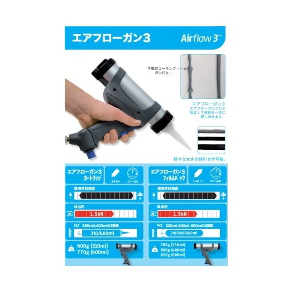 PCCOX エアーフロー3 400ml フィルムパック 100PSI 1丁箱 AF3400S コ―キングガン エアー圧式 ピーシーコックス 002