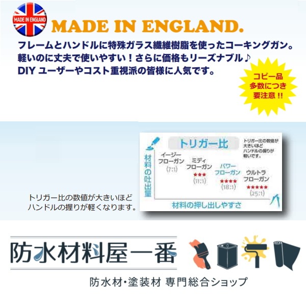 コーキングガン おすすめ ピーシーコックス パワーフローガン PF330CPS 330ml カートリッジ用 手動タイプ 1丁箱 008