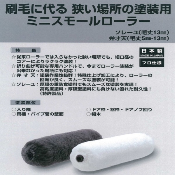pia ミニスモールローラー ミニ丸 2インチ 3インチ 4インチ 5mm 13mm 50本箱 マイクロファイバー 耐溶剤性アップ 狭所 雨樋 パイプ管 壁面対応 折り曲げ可能ハンドル 塗装用ローラー