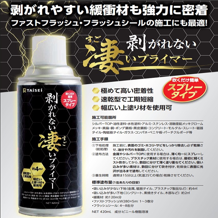 ファストフラッシュのサイズをお選びください。 剥がれない凄いプライマー 420ml缶とのセットです。 ファストフラッシュ各種 剥がれない凄いプライマー 420ml缶 |